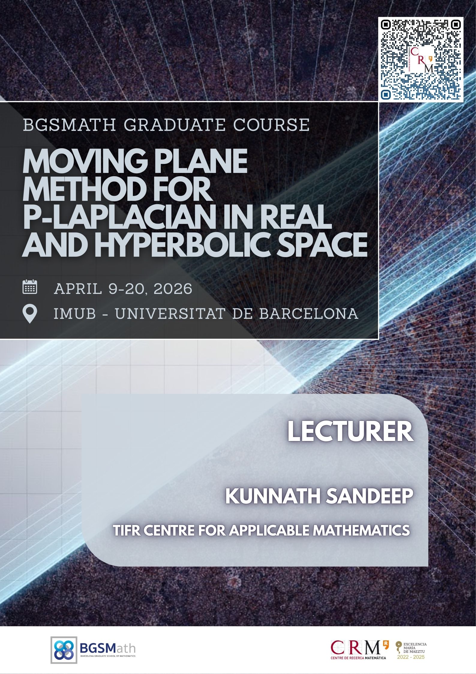 For inquiries about this event please contact the Scientific Events Coordinator Ms. Núria Hernández at nhernandez@crm.cat