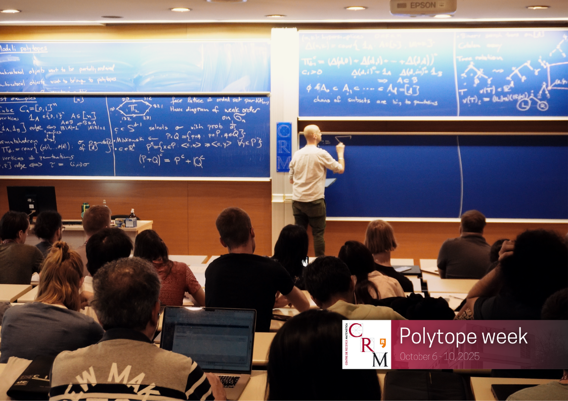 For one week in early October, the Centre de Recerca Matemàtica became a meeting ground for the world of combinatorial geometry. The Polytope Week research school gathered more than fifty participants from three continents to study the interplay between geometry and combinatorics through lectures, exercises, and open discussions. Carolina Benedetti (Universidad de los Andes) and Raman Sanyal (Goethe-Universität Frankfurt) led the two main minicourses, introducing current advances on matroids, positroids, and moduli polytopes.