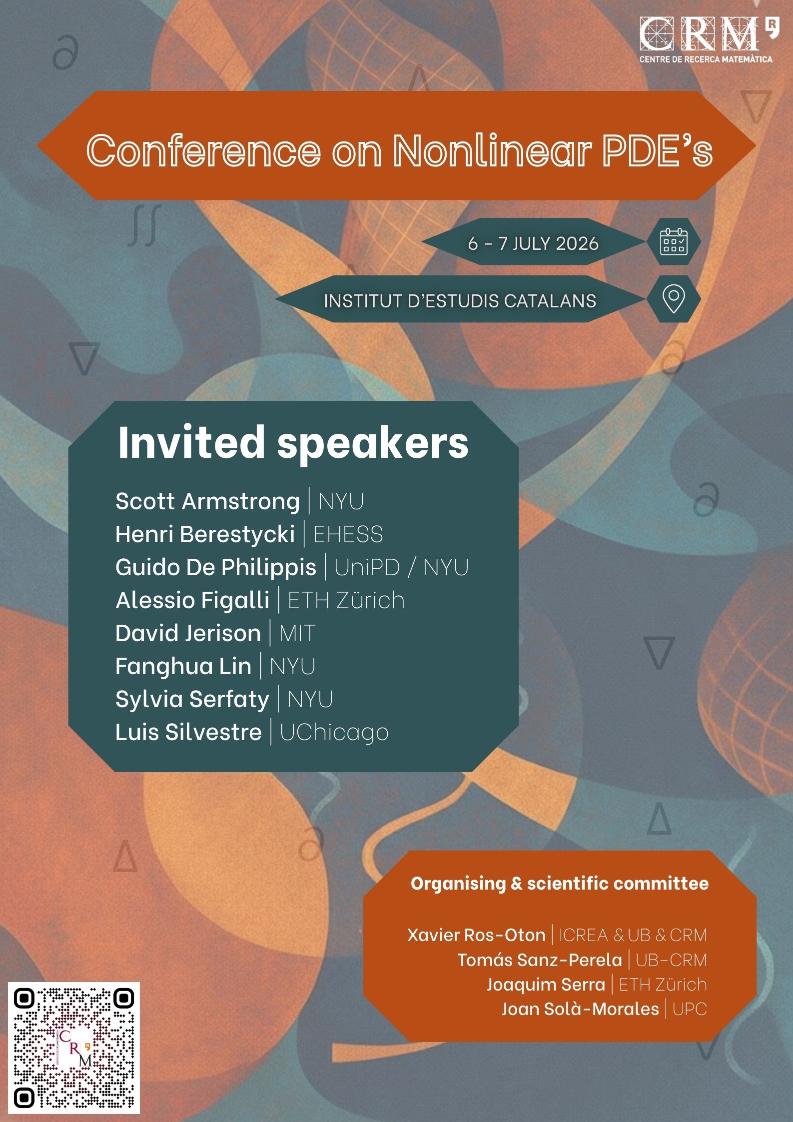 For inquiries about this event please contact the Scientific Events Coordinator Ms. Núria Hernández at nhernandez@crm.cat