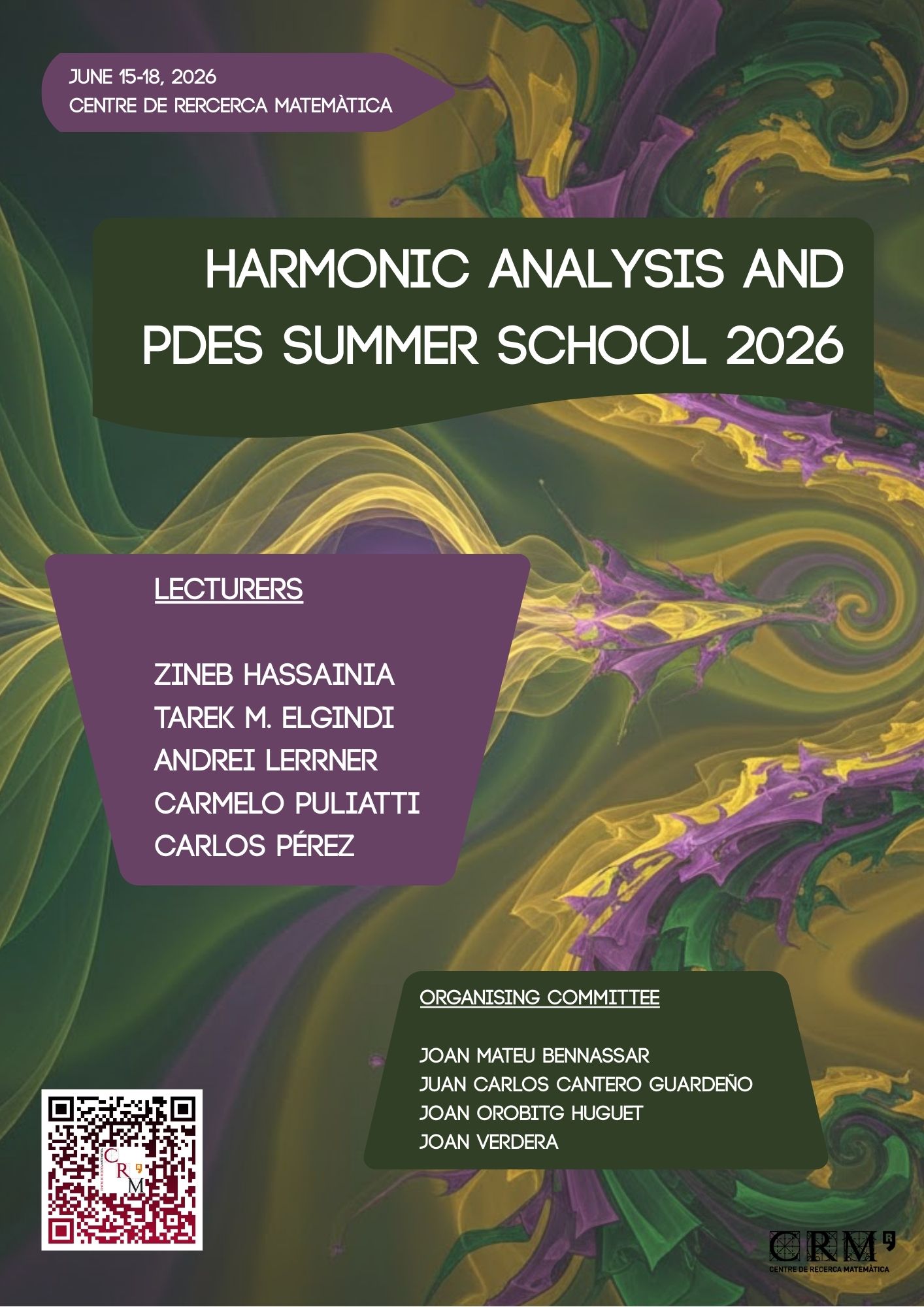 For inquiries about this event please contact the Scientific Events Coordinator Ms. Núria Hernández at nhernandez@crm.cat