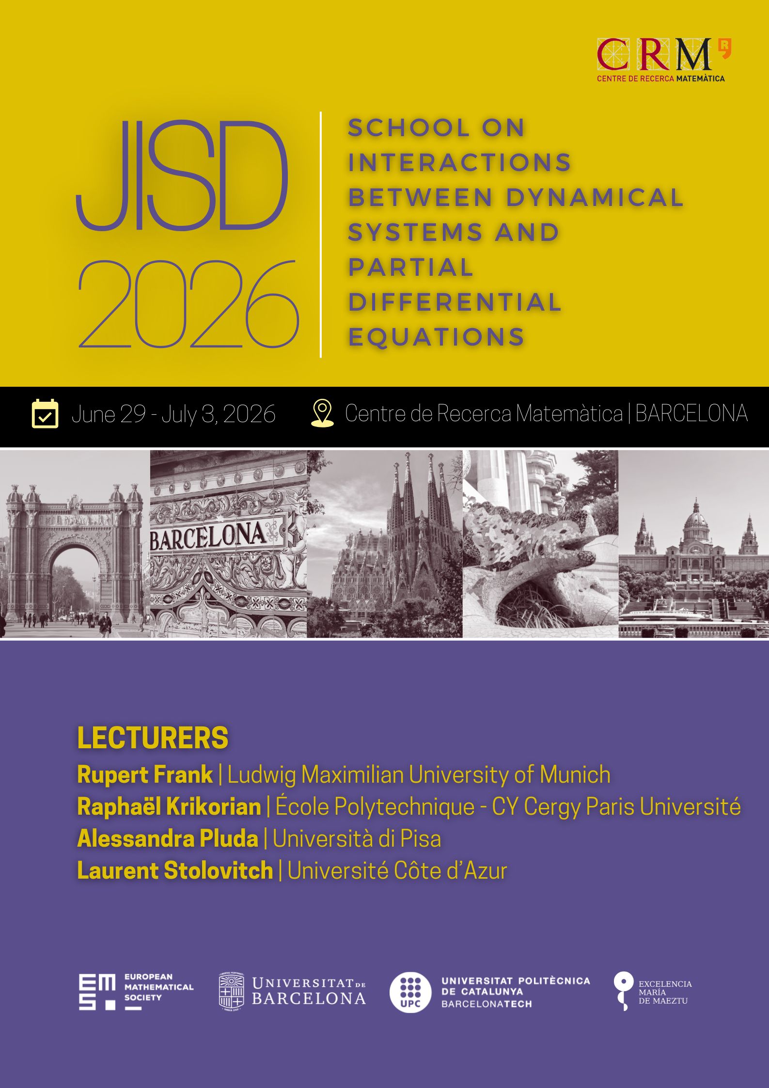 The School on Interactions between Dynamical Systems and Partial Differential Equations (JISD) is an international summer school that takes place in Barcelona since 2002. It was held at the School of Mathematics and Statistics of the Universitat Politècnica de Catalunya (UPC) until 2016 and at the Centre de Recerca Matemàtica (CRM) since 2017.