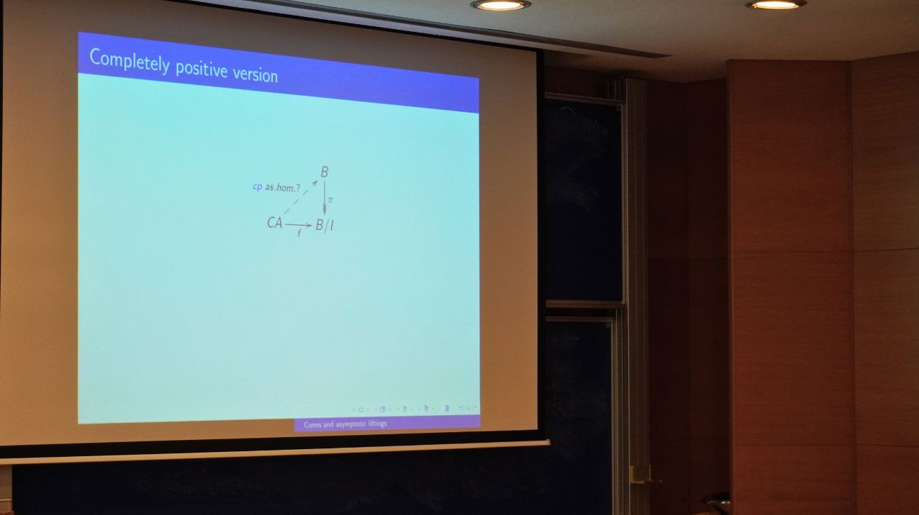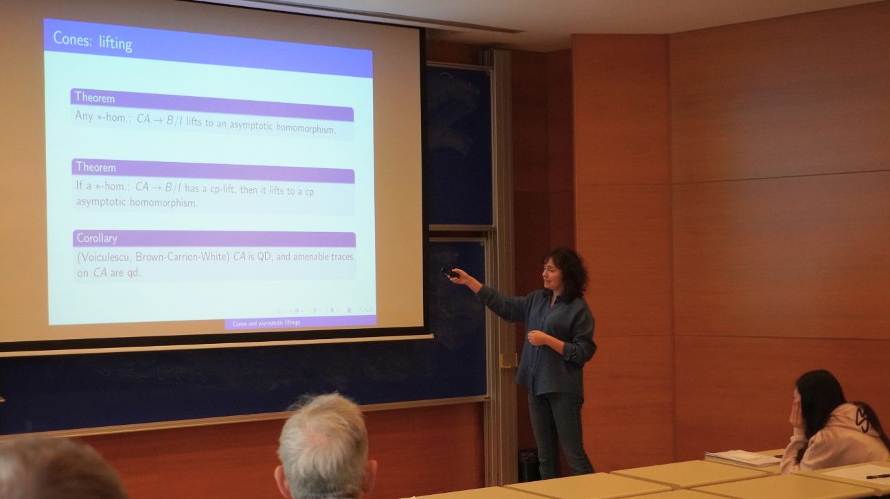 • Tatiana Shulman (University of Gothenburg) spoke on Cones and Asymptotic Liftings, focusing on cone C*-algebras and analysing both established and new properties—such as quasidiagonality and homotopy invariance—and their role in understanding deep algebraic phenomena.