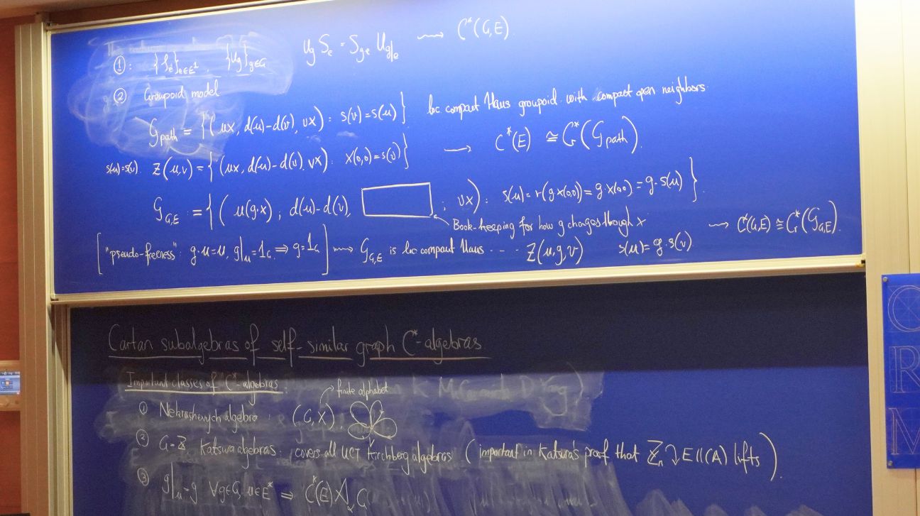• Shanshan Hua (University of Münster) examined Cartan Subalgebras of Self-Similar Graph Algebras, extending known descriptions beyond the locally faithful setting and constructing new groupoid models that recover part of the original self-similar dynamics.