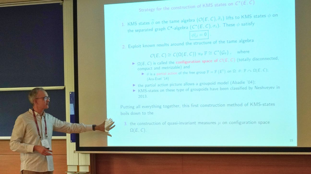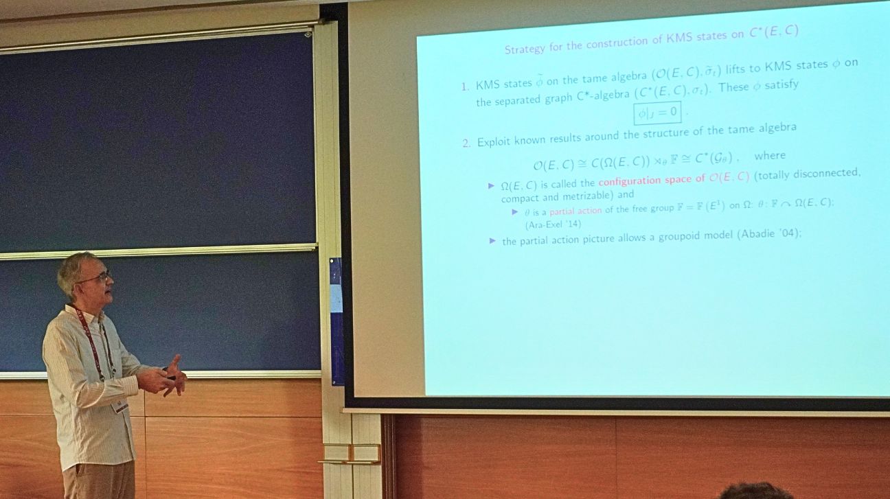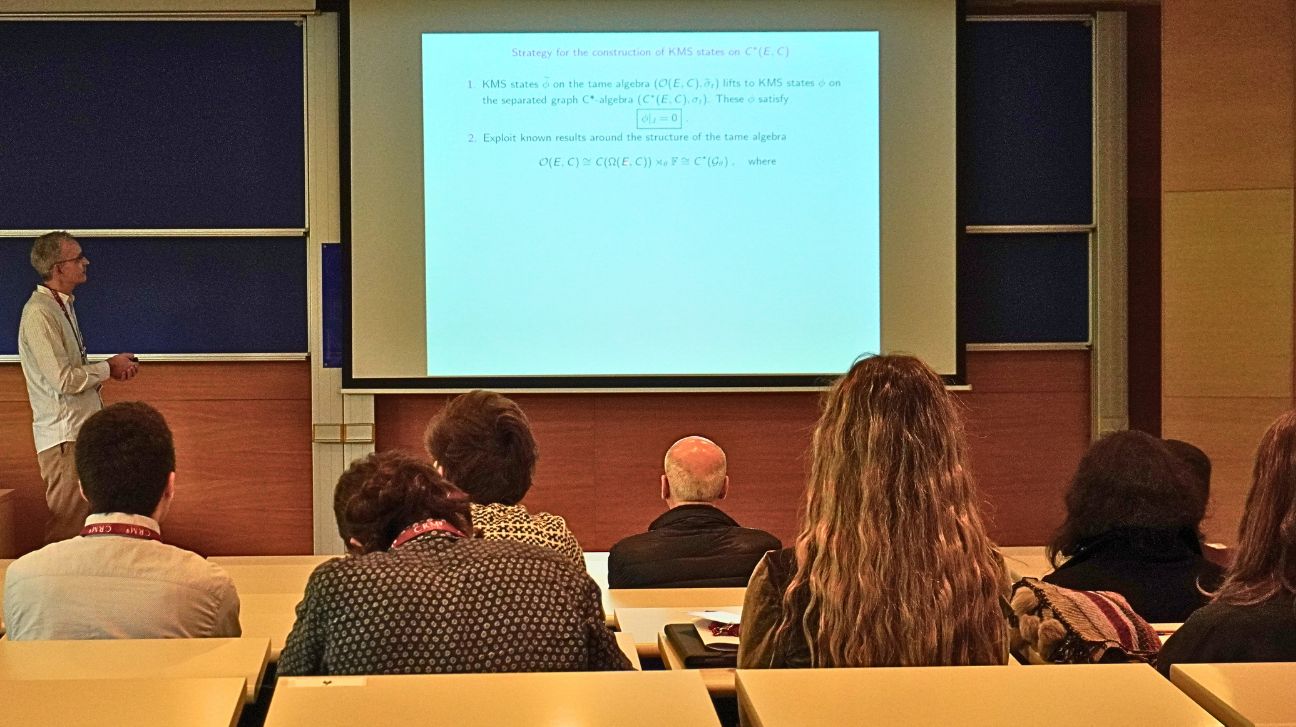 • Joan Claramunt (Universitat Politècnica de Catalunya) closed the event with KMS States for Separated Graph Algebras – II, presenting a second method to construct KMS states for general separated graph C*-algebras and broadening the range of available techniques for studying these systems.